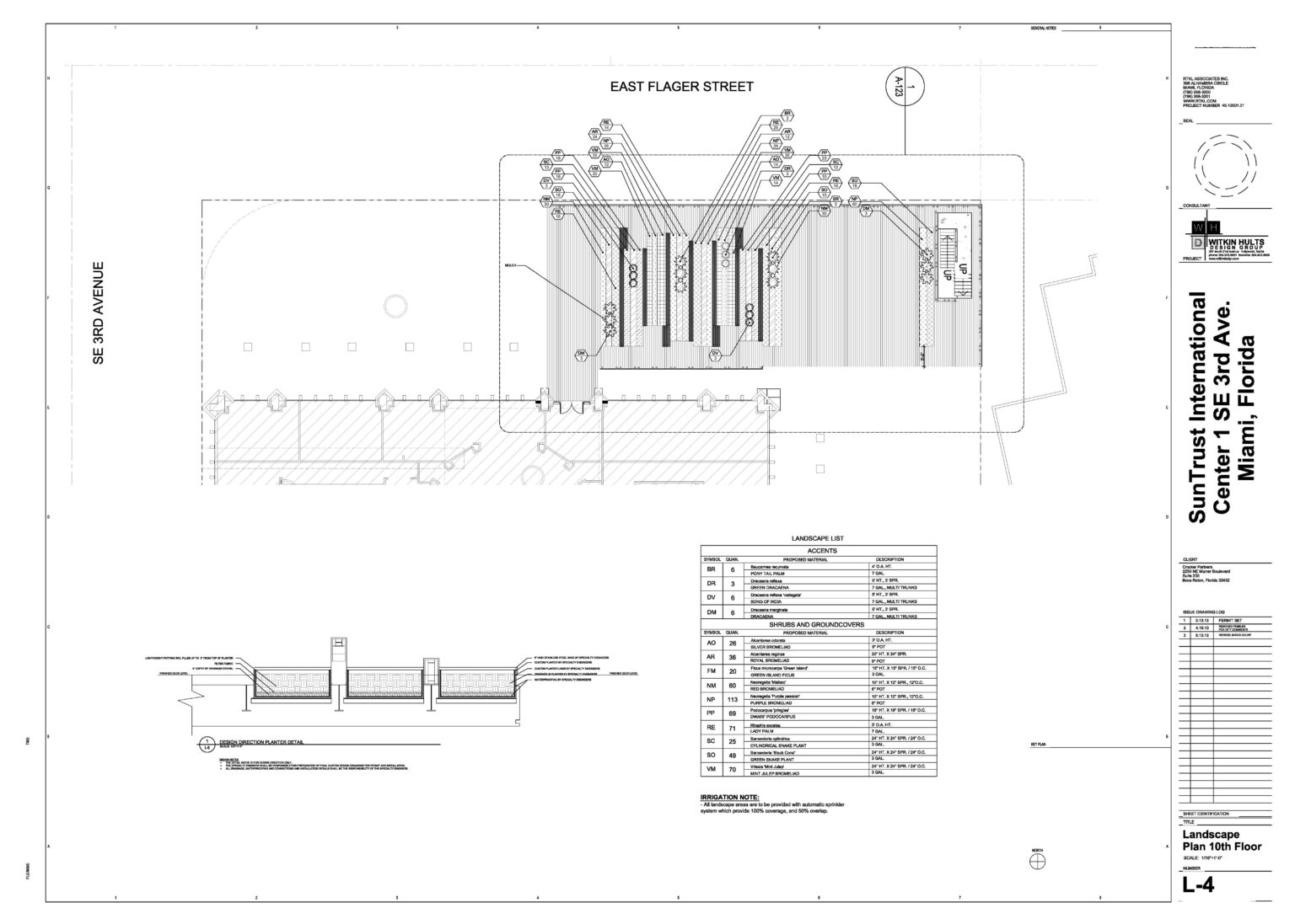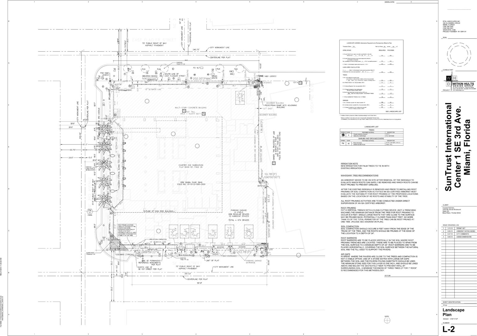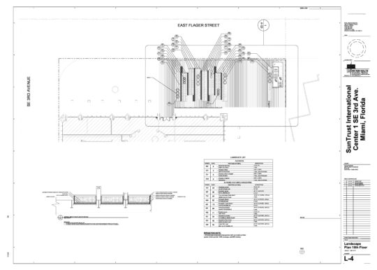 The Suntrust building in Downtown Miami wished to update the exterior and hardscape surrounding the building. An interesting paver design, with low albedo, was installed on the pavement. A roof garden with planters was a huge challenge, but a successful design was achieved.