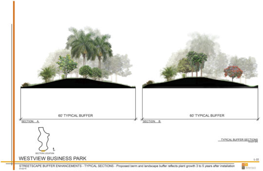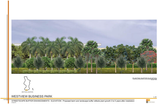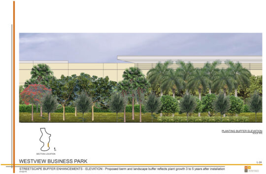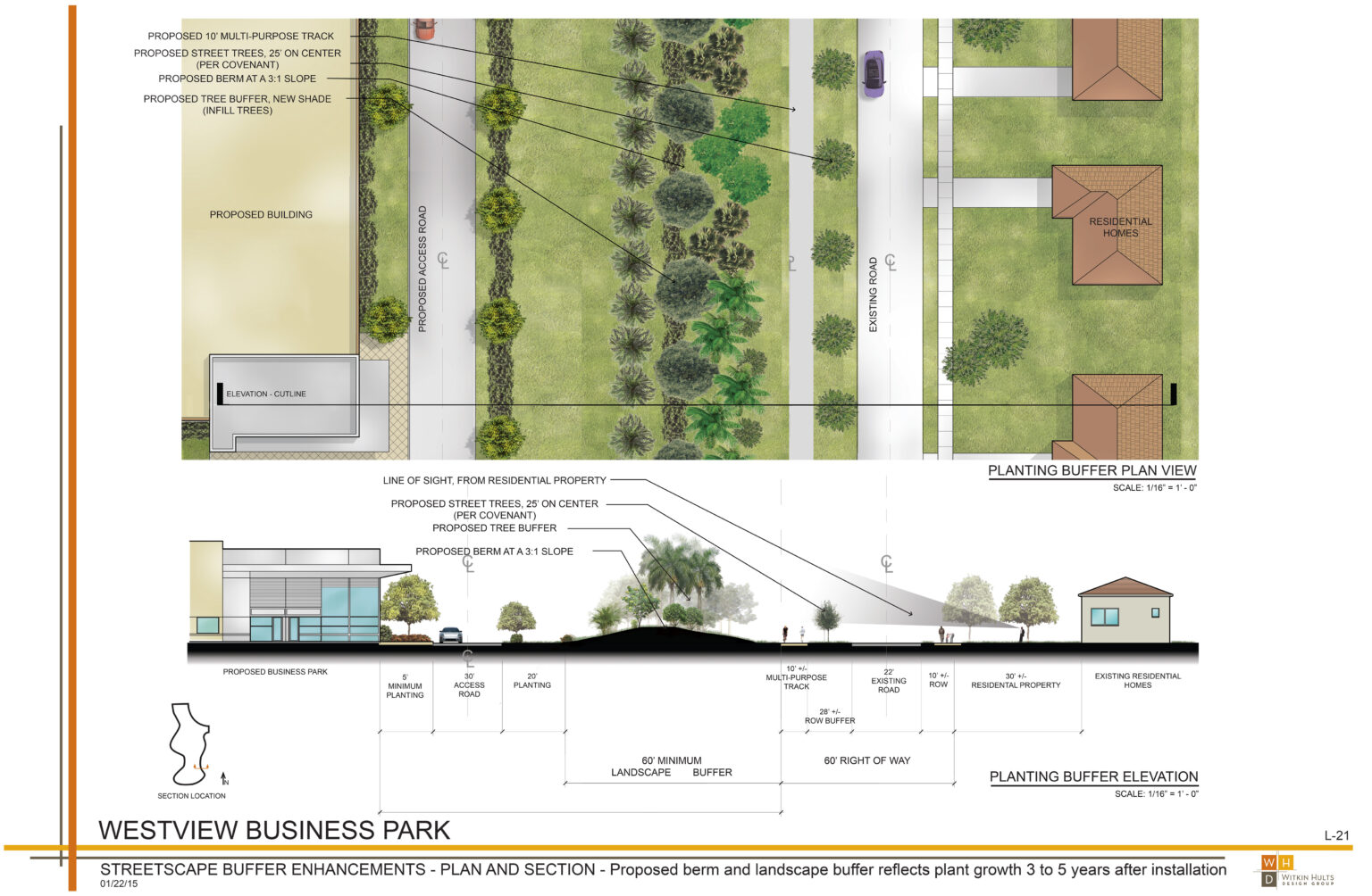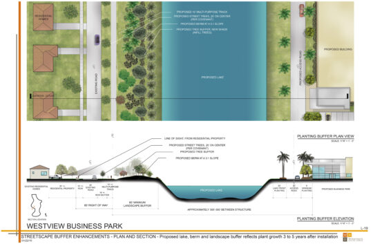 West View Industrial Park was originally a golf course in West Miami. Understandably the people living next to the golf course were distraught at the change. Much of the work involved creating buffers to mitigate the sights and sounds of an industrial park.